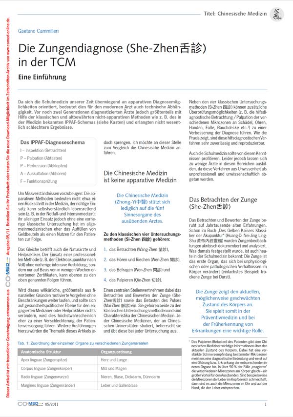 Die Themen der 1. Ausgabe: Schon wieder eine neue Zeitschrift? Chinesische Medizin verstehen lernen Diaoyinshu - die Kunst des Leitens und Führens Bao-Jian-Tui-Na: "Gesundheitserhaltende Massage" Die Möglichkeiten der Hypnosetherapie Was ist eigentlich Wissenschaft...